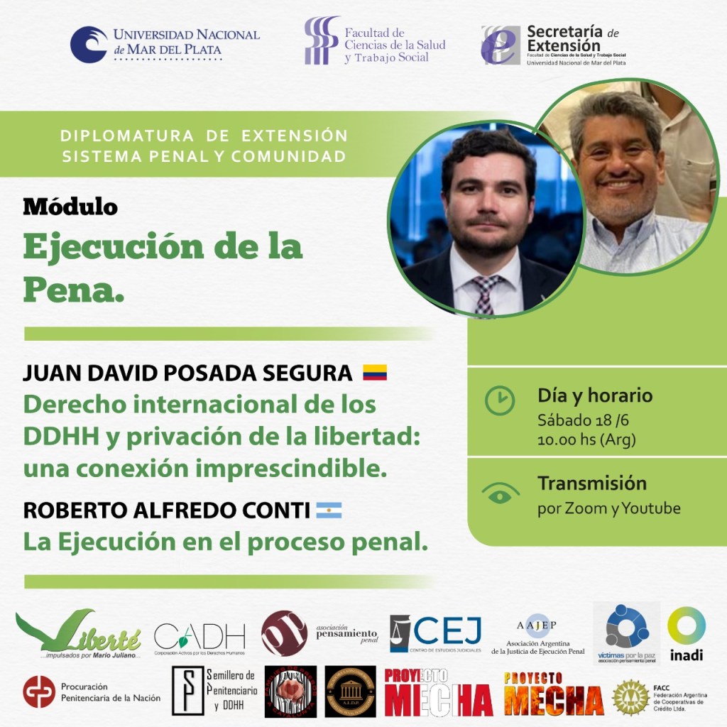 La 3ra. Jornada del diplomado Internacional “Sistema Penal y Comunidad. Autogestión y ética del cuidado para la integración humana y la convivencia social”, se llevó a cabo el sábado 4 de junio a las 10:00 a.m. (Arg) 8:00 a.m. (Colombia) y estuvo a cargo de: Juan David Posada Segura y Roberto Alfredo Conti.