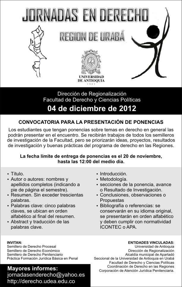 Publicado: 04/11/2012 en evento académico, grupo de investigación, Posada Segura, semillero, semillero de penitenciarioConvocatoria pública para todos los integrantes de semilleros de investigación de la facultad de Derecho y Ciencias Políticas de la Universidad de Antioquia sede Medellín y todas sus regiones.