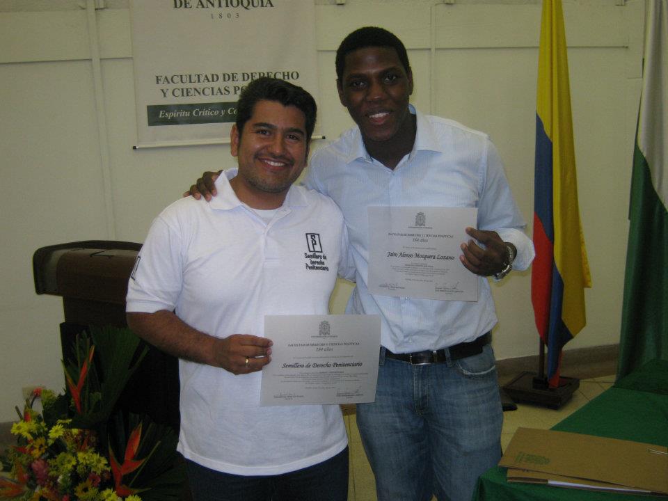 Hace 4 años unos estudiantes creyeron en un sueño, el sueño de crear el primer grupo dedicado a asuntos penitenciarios en el país; emprendieron la dedicada tarea de investigar  y transmitir esa realidad penitenciaria que sólo conoce quien trabaja o vive en ella.  Estudiantes inquietos que le apostaron a ese ideal encaminado a transformar realidades sociales y que hoy, luego de tantos esfuerzos alcanzan uno de los mayores logros en su vida profesional pero no sólo con un título de abogados en la mano sino con un equipaje de ponencias, publicaciones y reconocimientos que les abrirán más puertas profesionales. El día 5 de agosto, Luis Eduardo Peláez, Cristian Guardia e Ivonne Llerena López se convirtieron en abogados de la Universidad de Antioquia; por su parte el 19 de agosto se realiza la ceremonia de grado para otorgar el título de abogados de la Universidad de San Buenaventura a Douglas Stevenson Sosa Vanegas y Jennifer Morales Uribe; motivo que resaltamos dentro de nuestro grupo y al cual le hacemos extensivas y cariñosas felicitaciones por escalar un peldaño más en su vida y por ser esos jóvenes que le apostaron a una forma diferente de hacer investigación.