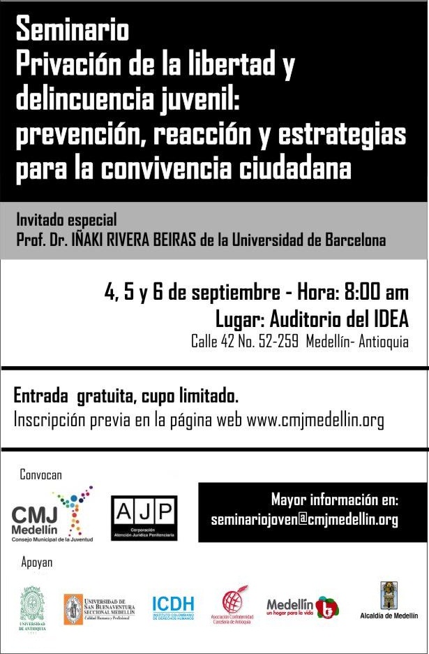 INSCRIPCIONES: http://cmjmedellin.org/tus-derechos/2012/seminario-de-privacion-de-la-libertad-y-delincuencia-juvenil/
